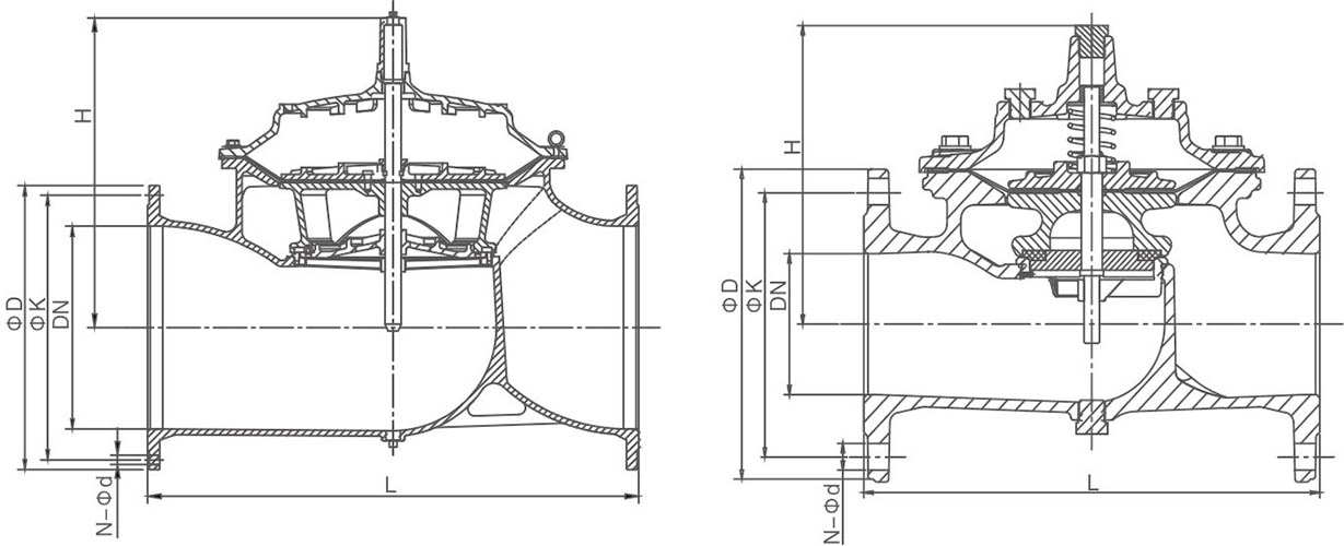 100X遥控浮球阀是兼具多功能的水力操作式阀门。主要安装于水池或高架水塔的进水口处,当水位达到设定的高度时,主阀由浮球导阀控制关闭进水口停止供水;当水位下降后,主阀由浮球导阀控制打开进水口向水池注水,实现自动补水。液位控制精确,不受水压干扰;隔膜式遥控浮球阀可随水池的高度及使用空间任意位置安装,维护、调试、检査方便、密封可靠,使用寿命长。隔膜式阀门性能可靠、强度高、动作平稳。适用于450口径以下的管道。